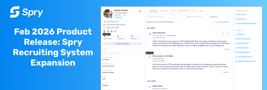 We’re thrilled to announce a handful of product enhancements driven by Spry partners. These updates are designed to give athletic departments even more control over their data and deeper insights into recruiting behavior and activity for Prospective Student-Athletes (PSAs).